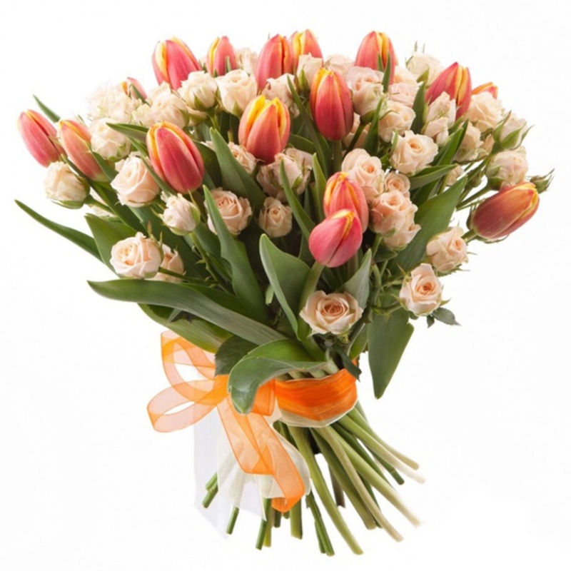 Букет из тюльпанов и кустовой розы "Весеннее настроение"
